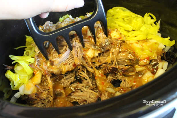 Mezclarlo todo de una vez y añadir el vaso de pepperoncini.