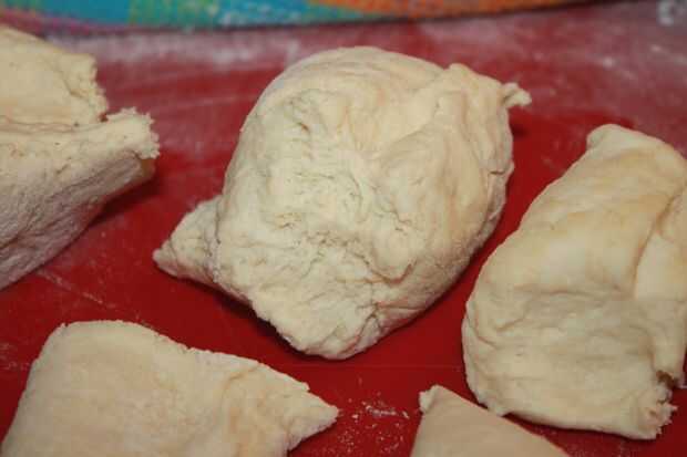 Cuando la masa ha aumentado al doble de su tamaño, rodar en una salchicha de grasa y cortar en trozos de 12-15.