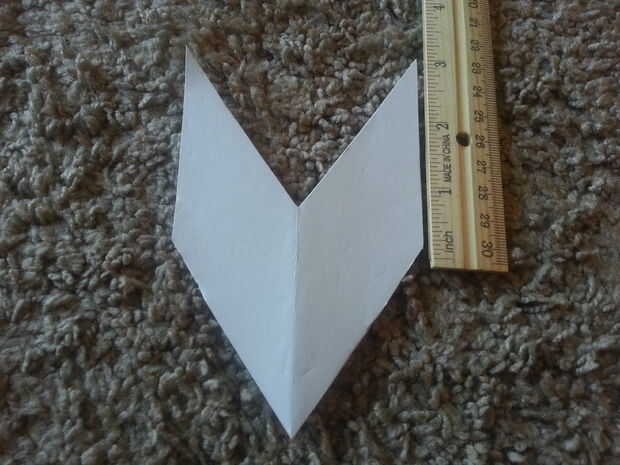 1.) usando la regla, mide 3 pulgadas en el tablero del cartel para el primer lado y diagonal de 3 pulgadas. Corte a los 3 lados (superior, laterales, inferior) dejando el lado 4 todavía conectado a la tarjeta de cartel. Pliegan en la cartulina restante y trazar el contorno de una imagen espejada. Luego corte los lados restantes para hacer la forma. Esta es la primera escala y enlace en la columna vertebral.