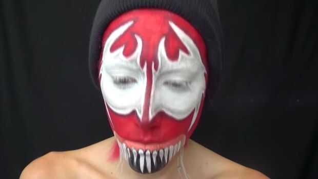 Esto es un poco espeluznante.Paso 1: esquema Primero tomar un tiempo delineador de ojos y esbozo su diseño.Paso 2: Base Luego tomar este metálico azul cubre su cara dejando el lugar donde los ojos se van claro.Paso 3: La base del ojo Utilizando un lá