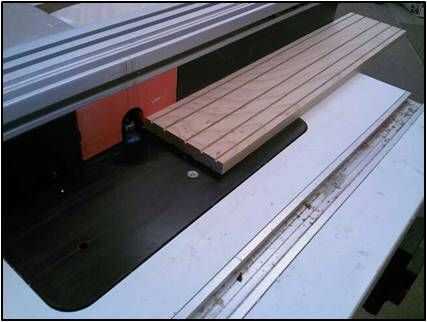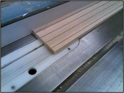 Ajustar la altura de la hoja de Sierra de mesa a 1/16". La guía en ½" y ejecutar la acción a través de la hoja de sierra. Vuelta al tablero y recorren el otro borde de la hoja de sierra.