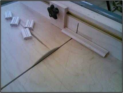 Utilizar un trineo de corte transversal en la Sierra de mesa y cortar las espigas, 1 7/8" de largo.