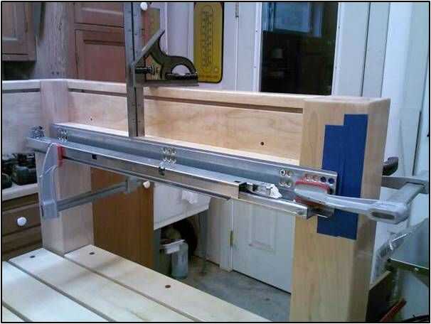 La diapositiva del cajón debe ser revés desde el borde frontal para crear una línea de sombra y para tener en cuenta el frente del cajón. Las dos correderas deben estar a nivel y constante de lo contrario el cajón no cierra correctamente.