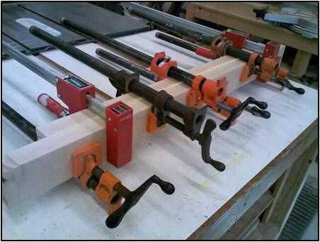 Diseño bar o abrazaderas y amarillo madera pegamento y un pincel para extender el pegamento.