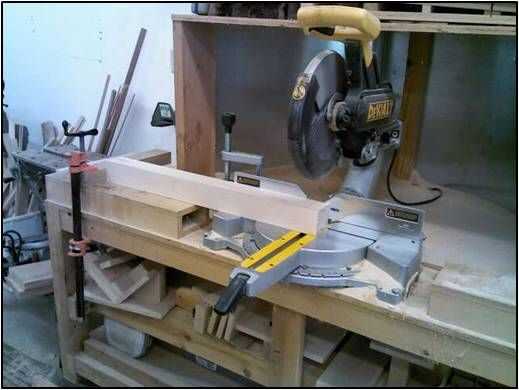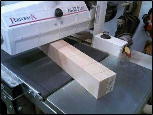 Una vez que las patas son tamaño a 3" cuadrada, use un corte transversal sierra al tamaño de las piernas a 30" de largo.