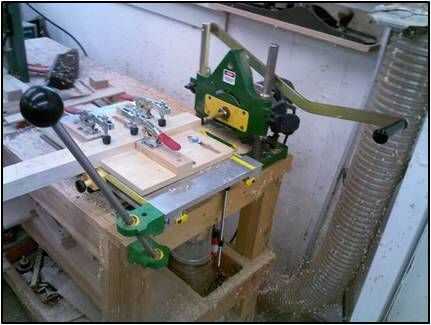 Alinear el movimiento oblicuo del bit router según la disposición de mortajas. Centro de la broca de fresadora en el espesor de las piezas.