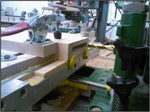 El tamaño de broca y la profundidad de corte creará un montón de esfuerzo de torsión, por lo que la población tendrá que estar adecuadamente fijadas a la cama de la fresadora horizontal. Configurar router horizontal con sujeción que le centro de cada pieza en la cama de router. Usé un número de tensionadores de sujeción rápida para asegurar las piezas de trabajo.