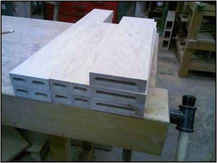 Los hombros de mortaja superior e inferior de los delantales son un 3/8" y ½" en las camillas. El tamaño del hombro depende de la anchura de la pieza.