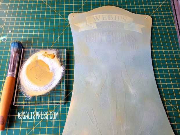 Para la siguiente parte todos que hice fue spray la muestra suavemente con el blanco que tenía un fondo más ligero en blanco para aplicar la pintura también da una capa uniforme de primer. El siguiente paso fue un seguimiento con las pinturas de acrílico en un montón de colores de señalización oxidado o viejo para la textura e interés.