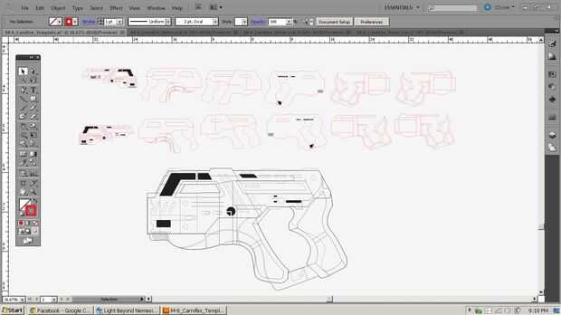Ahora, si usted fuera a hacer esto desde cero, sería descargar una imagen del lado de la pistola, soplarlo a tamaño completo y trazar con su programa (Illustrator u otros programas de código abierto) para editar vectores Sin embargo, ya he hecho lo de todos, así que solo descargarlo! Además, descargar el patrón de diseño para que sepas qué partes apilar hasta dónde.