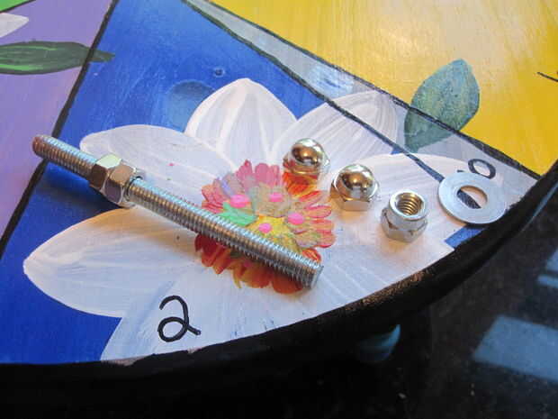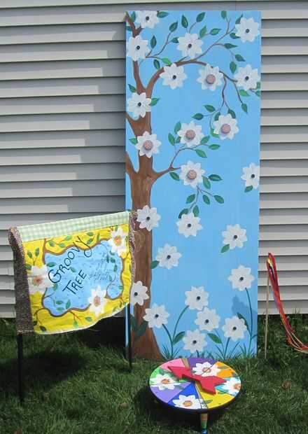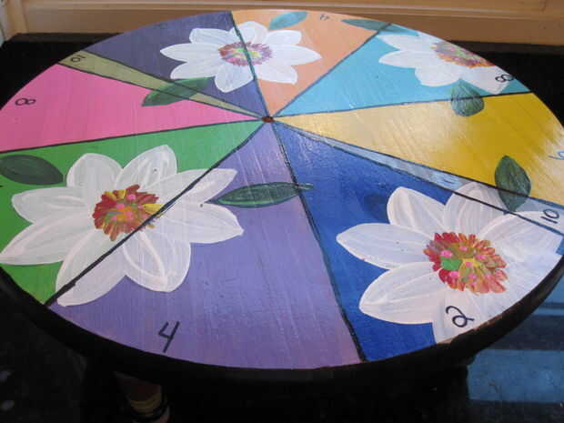 Este juego está pintado en la parte posterior de la puerta del hueco de la base. Cada flor tiene un imán en el centro y un disco extraíble. Los centros están hechos de botones, pero se retiraron los pernos.