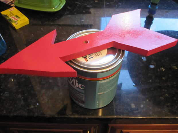 El cono está hecho de un viejo taburete que tengo en el fondo de comercio. Corta las piernas. La flecha se corta de MDF. Sólo usé un tornillo para unirla.
