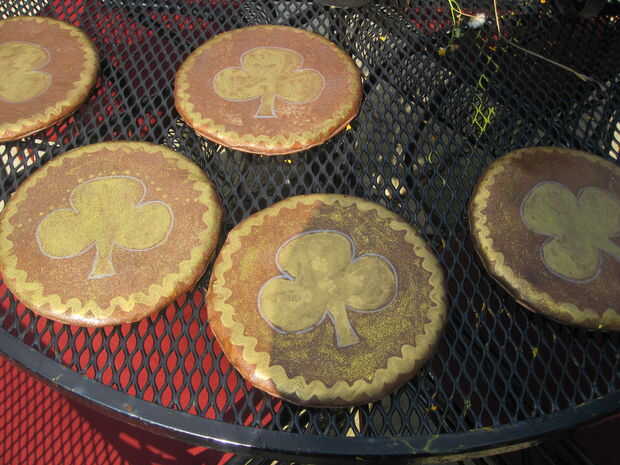 Las monedas de oro están hechas de los juguetes del perro encontrados, una vez más, la tienda de dólar. Usé pintura en aerosol oro para añadir color. Tuvo unos abrigos pero ven muy bien.
