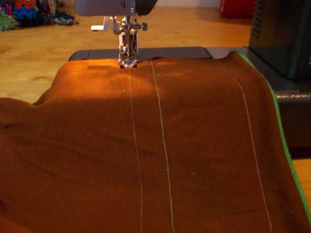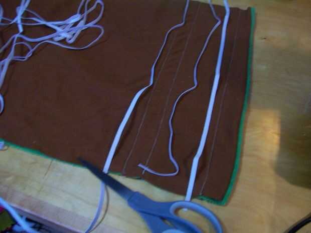 Corte elástico y tire a través de cada una de las carcasas. Tire ligeramente y asegure cada extremo con la máquina de coser. No desea que el elástico sea muy apretado o será incómodo.