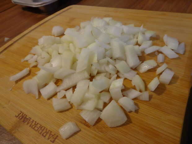 Primero tienes que cortar la cebolla a la consistencia deseada para tu lasaña.  Mina cortadas en diferentes tamaños.