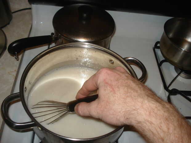 Ahora para cubrir todo en papel. Estoy seguro que hay instructables otros papier maché tan sólo a cubrir este básicamente. Conseguir un montón de periódico y rasgar en tiras. Puede hacer una pasta de una mezcla de harina 1part a 5 partes de agua a hervir revolviendo constantemente. También añadir un montón de sal para que deje de salir. Deja que se enfríe y puedes empezar a cubrir la cabeza. También vas a necesitar un montón de pasta - probablemente más de un galón. no estar demasiado preocupado de colocar demasiado papel, que no debería aumentar demasiado el peso de la cabeza y más es mejor. Igualmente, puede llegar lejos con tan poco como 2 capas (1 interior, 1 exterior) en muchos lugares.