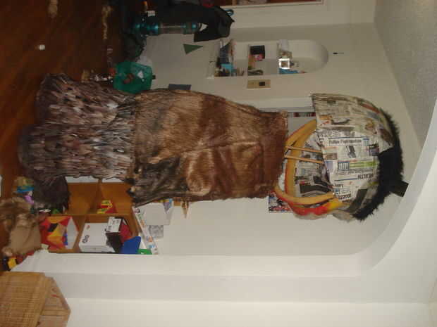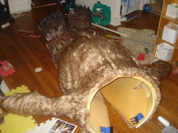 Ahora que el cuerpo se levanta sobre todo en su propia, es tiempo de dar el paso y cortar esa piel de pelo caro. La piel es probablemente la pieza más cara del traje, así que ten cuidado. Siempre que sea posible, en primer lugar, pin cortar más tarde. En algún momento, sin embargo, sólo vas a tener que hacerlo. Estar seguros de que se une en piel se ven muy bien sin ninguna habilidad especial. No hay ningún patrón para piel del cuerpo del monstruo, así que tienes que trabajar en ello en el traje. Esta habilidad se llama drapeado que creo, y personalmente estoy sólo aceptar en él. Una vez más, afortunadamente, la piel oculta muchos errores. Corte el pelo en cuatro partes para el cuerpo; frontal izquierdo y derecho, vuelta a la izquierda y la derecha.
