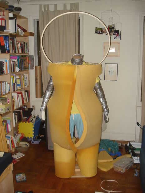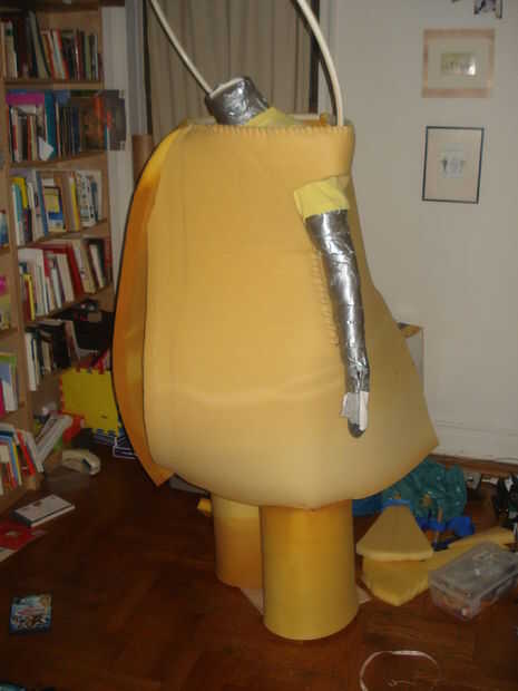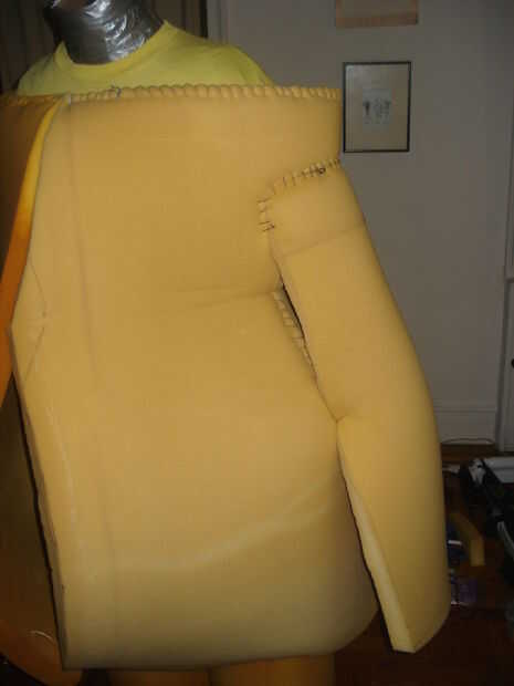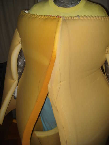 Los rectángulos son obviamente idénticos. Una dimensión es la longitud de la rodilla al hombro y el otro se consigue envolviendo la espuma alrededor del maniquí y estimar - siempre es mejor tener a mucho en este caso. El cuerpo puede ser imaginado como una huevo vertical forma - con la parte del vientre como la circunferencia más amplia. Cuando usted corta esta primera vez, debe estar pensando en las mitades de dos cuerpo hacer un cilindro con esa circunferencia.