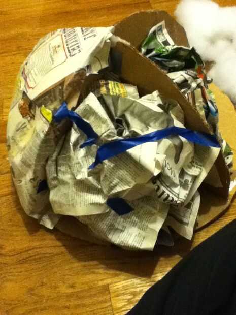 Después usted había forrado la parte de tapa, toma un periódico y hacer grandes Cruncheando por racimos y uniformemente en alrededor de la cabeza. Si usted no balance te incline a un lado.