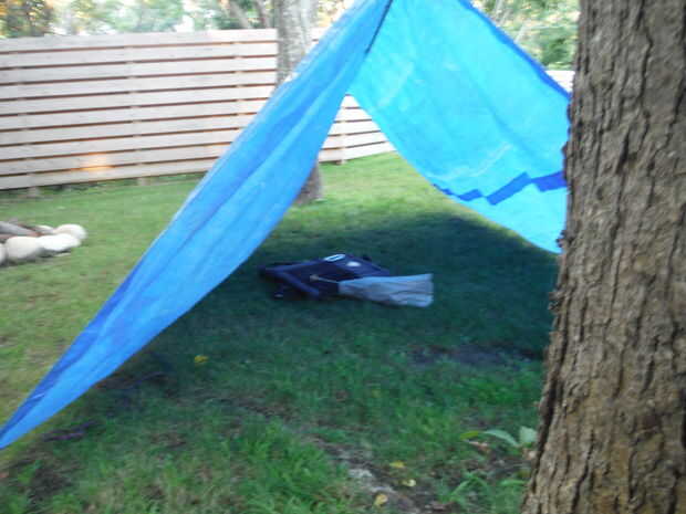 Use blue tarps to make tents.Paso 1: Materiales necesarios: Materiales necesarios: lonas azules, postes: 2" por 2" madera, bambú o árboles, cuerdas, estacas (1†2â € por 18†afiladas madera y muestreos).Paso 2: Hacer un modelo: Mira las fotos