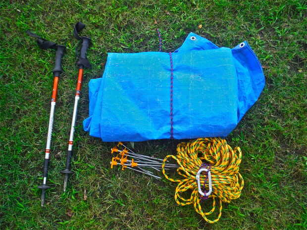 Bastones de trekking: es la mejor manera de armar una carpa de lona con bastones de trekking. Si no caminar con ellos y son camping cerca de árboles como alternativa usted puede atar una cuerda entre dos árboles.