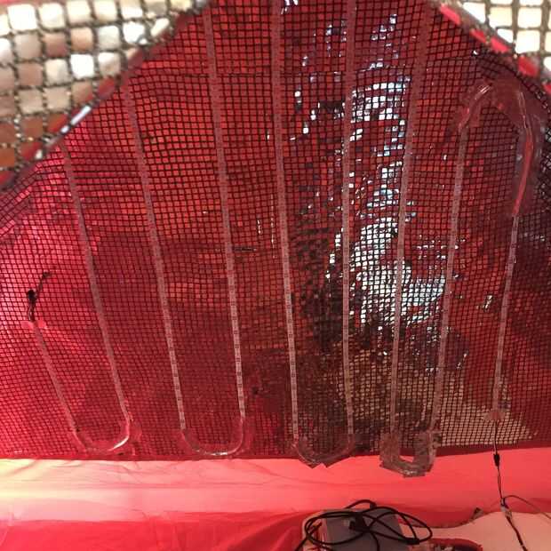 Simplemente coloque el fieltro sobre la pared de la tienda que desea montar las luces en, no tienes que desmontar la tienda, sólo pegar y recortar, como antes.