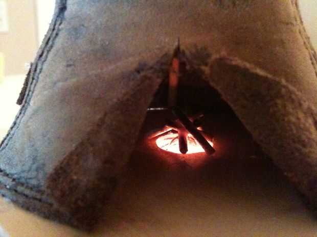 Por último, una pequeña pila de madera se fabricó de palillos de dientes.