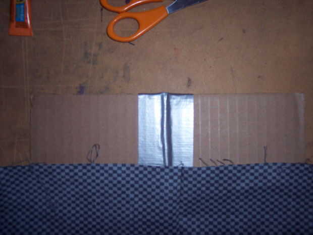 Pegamento de la pulgada de la parte inferior más o menos de tela para el borde inferior de la cartera y luego doblar a la tela hasta la parte superior. Doble los extremos de la tela en y pegar en la cartulina.