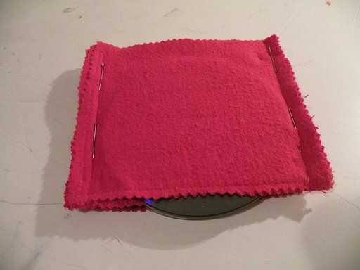 Ahora apila encima de todo, con un cd entre cada manga. Esto permite un espacio entre cada manga. PIN los lados, saque el cd y coser derecho a través de los bordes laterales.