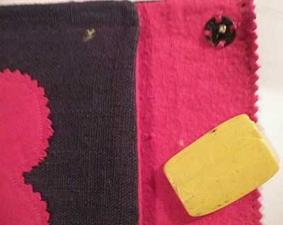 Cosa en algunos broches o Velcro. I coser el broche macho primero, luego puso cera de algunos sastre y presione en la tela donde debe conocer el otro lado. Luego coloque el broche hembra y coser. He utilizado un punzón para poner unos agujeros en el cartón para hacer más fácil coser a través de.