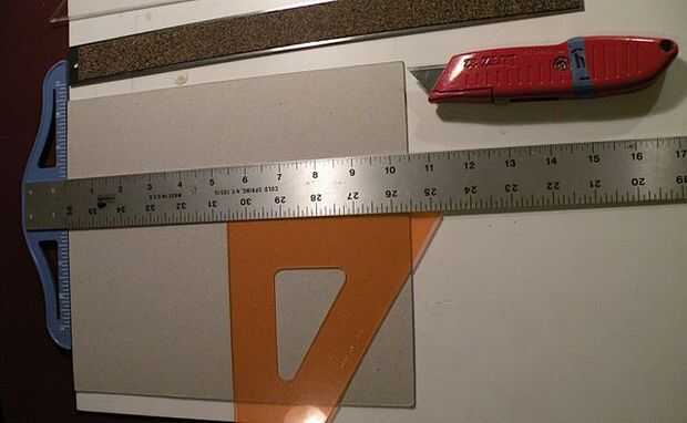Utilice un borde recto. También me gusta usar un triángulo para obtener las líneas que se enfrentaron. Pero no corte el borde de sus herramientas de plástico--nick les. En cambio, una vez que ha marcado su interruptor de ángulos a su regla de fondo corcho--previene el deslizamiento. Y espero que no tener que recordarle a cortar en una estera o un tablero viejo.