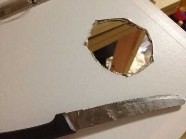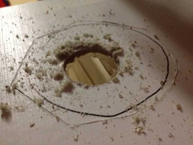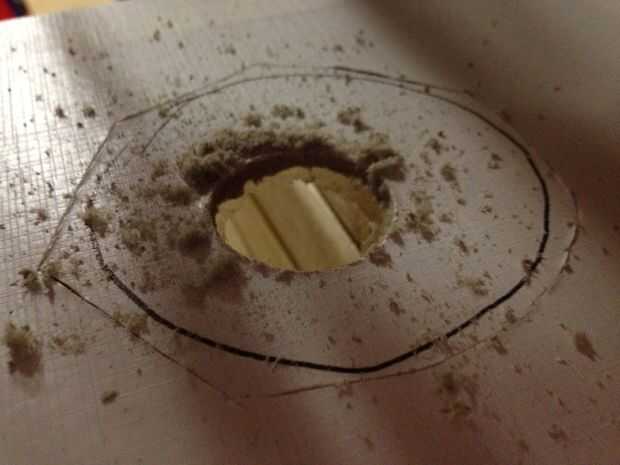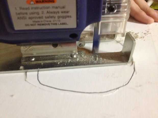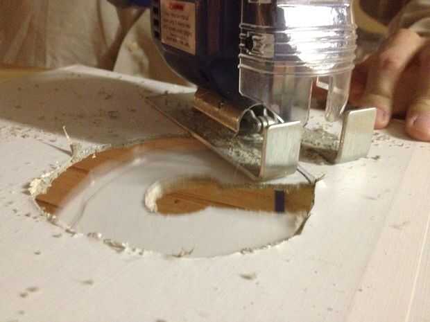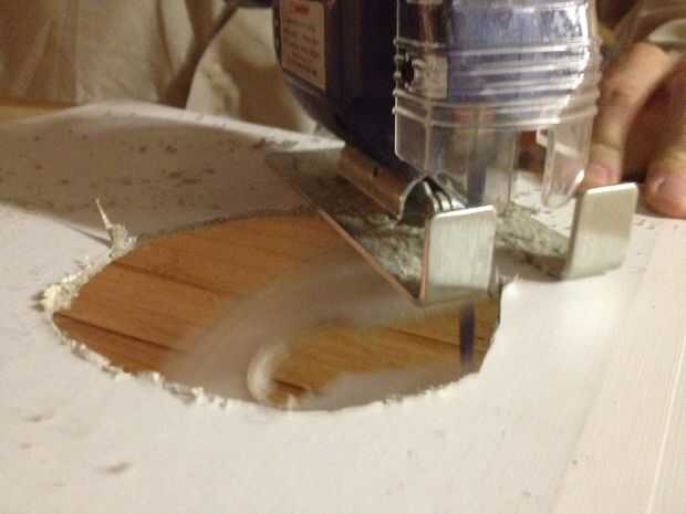 A continuación, encontrar su camino preferido para cortar los círculos. Estaba demasiado débil para el corte de caja, así que mi marido utiliza una sierra de calar. Pero corté los bordes como una sierra, con un cuchillo de cocina. Fácil!
