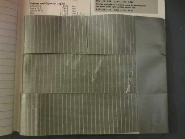 Cortar un 8" pieza de cinta, colocada desde la parte superior derecha de los lazos hicieron (la imagen proporcionará claridad). Colocar en el hasta que envuelve alrededor de la parte inferior (sellado del bolsillo).