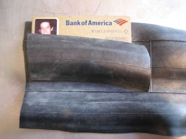 -Coloque la tarjeta en la cartera la manera usted quiere que aparezca por lo que puede marcar el primer bolsillo. alinear la parte superior de la tarjeta con la parte superior de la cartera. la tarjeta en la siguiente imagen sobresale demasiado por encima y necesitaba cambiar el bolsillo más abajo antes de coser en. en mi cartera la parte superior de la bolsa es aproximadamente una pulgada desde la parte superior del tubo de columna vertebral.