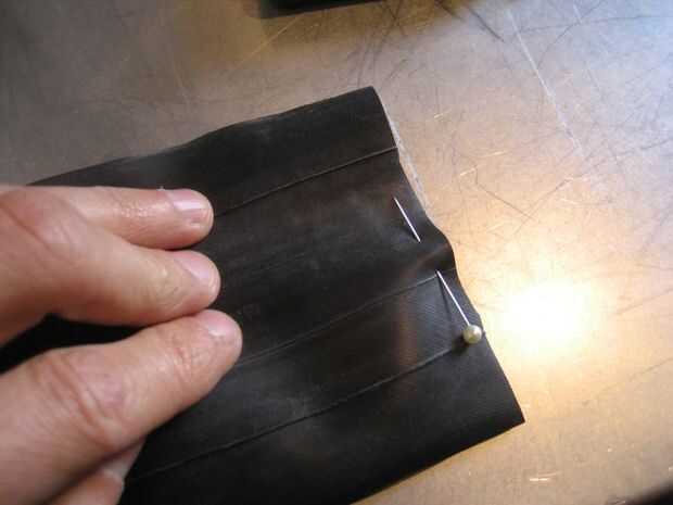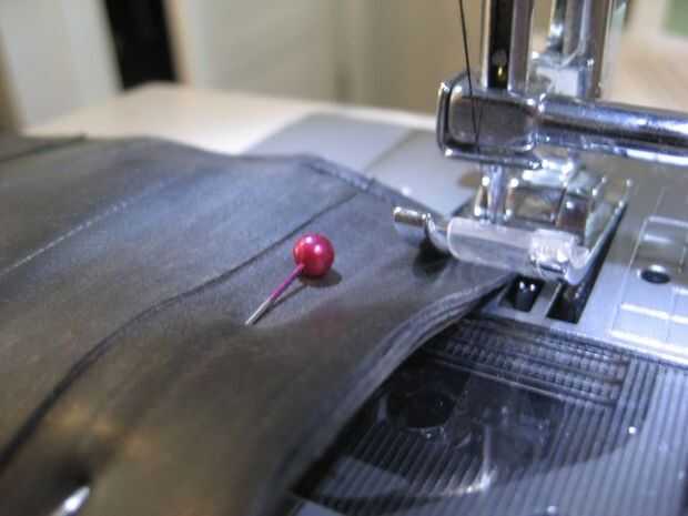 -coser alrededor de los bordes, tratando de evitar los bolsillos. la máquina puede coser a través de dos capas de goma pero comenzó a correr en problemas y se rompió una aguja, una vez que empecé a coser a través de tres capas de goma. Si tienes que hacerlo te sugiero adelantar la máquina a mano o utilizando una aguja más industrial de la fuerza.