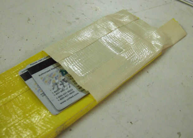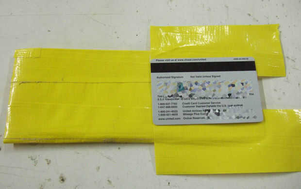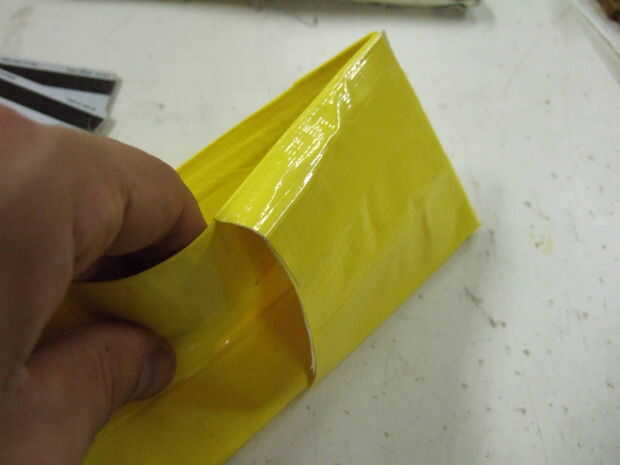esto es un duradero conducto taoe lo que tiene un soporte de ranura y tarjeta de crédito de imagenPaso 1: materiales conducto de cinta, sizzers, insertos de plásticoPaso 2: cortar corte dos pedazos de cinta adhesiva de 10 pulgadas de largoPaso 3: la