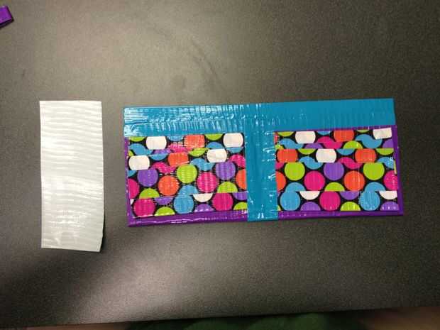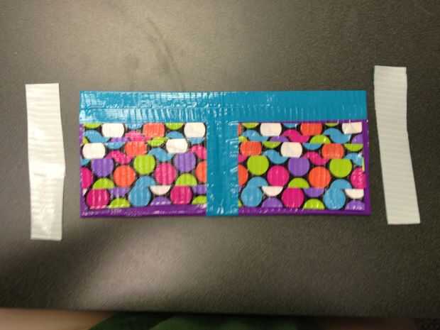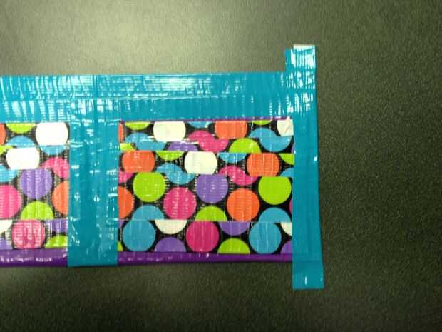cartera de cinta de conducto estándar con 2 bolsillos para las tarjetas. esto tarda unos 30 minutos para hacer. me gusta porque se puede personalizar para exactamente el tamaño que desee.el truco principal para hacer una billetera de cinta de conduct