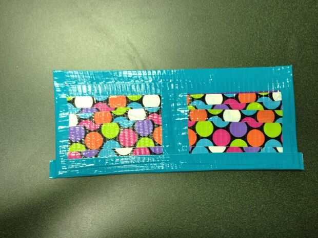 cartera de cinta de conducto estándar con 2 bolsillos para las tarjetas. esto tarda unos 30 minutos para hacer. me gusta porque se puede personalizar para exactamente el tamaño que desee.el truco principal para hacer una billetera de cinta de conduct