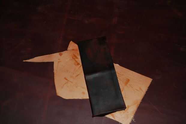 Una billetera de bolsillo delgado, delantero con tres ranuras para tarjetas yuna ranura grande. De 3 onzas vegetales curtidos de cuero y marrón oscuro teñido a mano.Paso 1: Cortar las tiras de Estoy empezando con un lado de 3 oz. cuero curtido vegeta