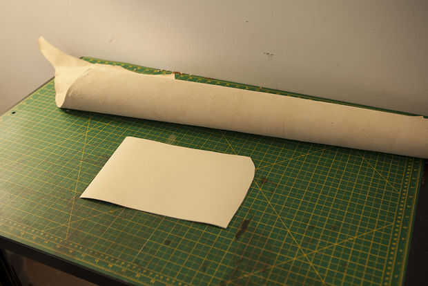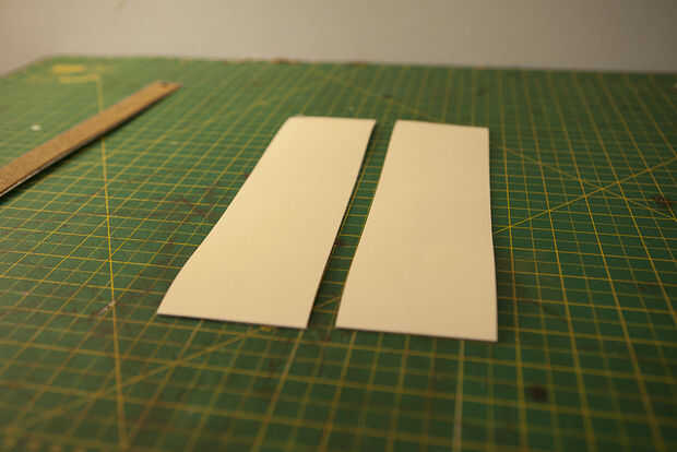 Estoy empezando con un lado de 3 oz. cuero curtido vegetal. Esto evitará que las cosas bonita y delgada. Esto funciona con la mayoría de los tipos de piel, pero sólo tengo tan veg en 3 oz. Todas las piezas para esto son 3" de ancho, así que corte las tiras. Estas dos tiras será suficiente material para las cinco piezas que se necesitan.