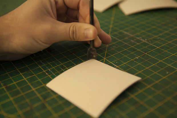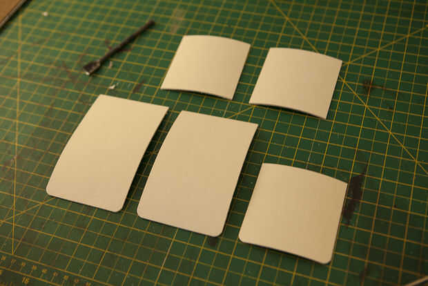 Sólo necesitan algunos cortes pequeños ahora. Tenemos que redondear las esquinas de la parte dos inferior en las dos piezas grandes y una pieza cuadrada. Si no tienes un cincel de esquina, puede hacerlo a mano con un cuchillo afilado.
