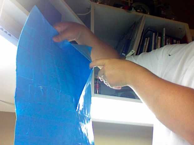 cómo hacer una billetera de cinta del conducto.Paso 1: el poner las piezas juntas hacer 6 de las cosas la imagen1. use la parte expuesta para pegarlos juntos de la cinta para hacer una paz más grande que se puede doblar para hacer el bolsillo princip