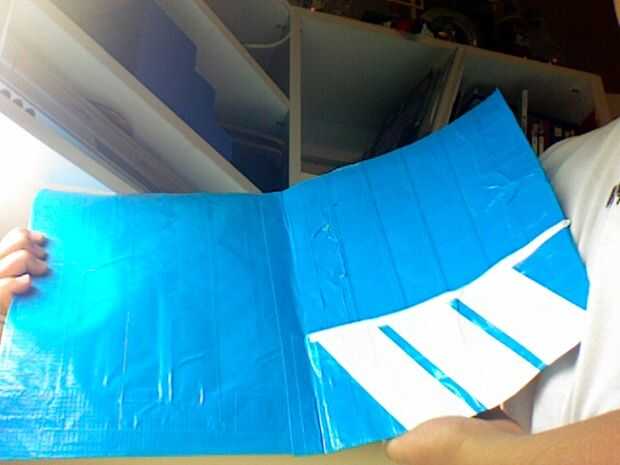 cómo hacer una billetera de cinta del conducto.Paso 1: el poner las piezas juntas hacer 6 de las cosas la imagen1. use la parte expuesta para pegarlos juntos de la cinta para hacer una paz más grande que se puede doblar para hacer el bolsillo princip