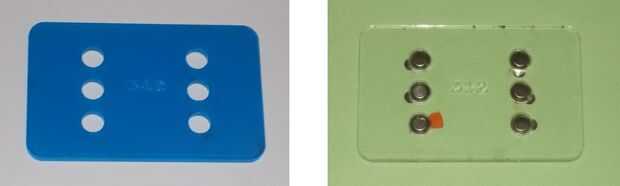 Usé. 090" acrílico forma un departamento local de la ventana de Home Depot y láser corte los orificios para ser una presión ligera para las baterías. No hay ninguna magia para tener seis agujeros, sólo me pareció un buen número. Las dimensiones de las acrílicas son igual que una tarjeta de crédito.