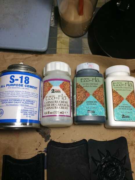 Yo estoy usando el 3-4 oz economía veg tan cuero que recogí a Tandy a la venta, tiene cicatrices, agujeros, marcas y otros defectos. Pero evitar cosas malas e incorporar otras cosas para agregar carácter. Como la foto muestra incluso utilice piezas de otra manera inutilizable en lugares que no se ven...