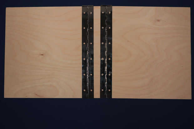 En este punto me di cuenta que una bisagra de 12 pulgadas no de 12 pulgadas de largo así que marcado para ser tan alto como la carpeta y utilizar una amoladora o lija para hacer la bisagra quede al ras con las placas.