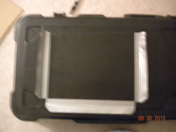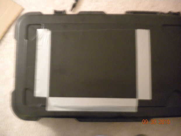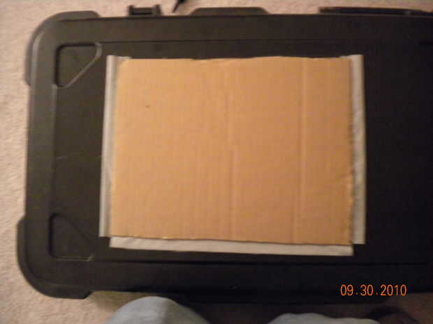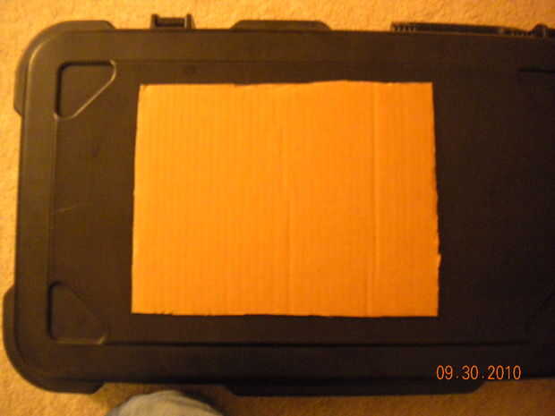 Traza el corte en su caso. Ponga cinta en tres de los lados hacia fuera, dejando la cuarta para la apertura. Doblar la cinta de 1/3 de la cinta es sobre el caso, 1/3 se pega a la cartulina, y 1/3 está abierto.