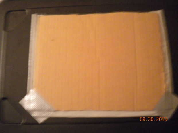 Tape the corners. Añadir hacia abajo la cinta en los bordes con cinta ya tres. Tire la carpeta lo suficientemente abierta para que usted podría poner sus libros en. Los bordes laterales se levantarán. Que tire en como todo lo que pueden cuando abres la carpeta, luego pegarlas hacia abajo con un poco de cinta por la mitad.