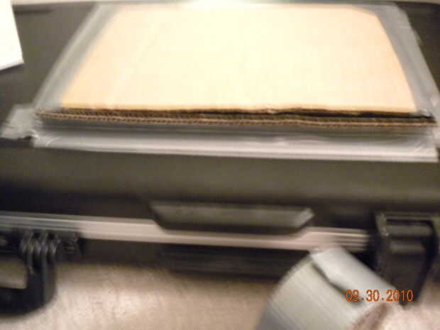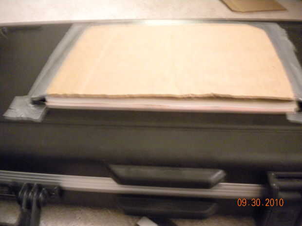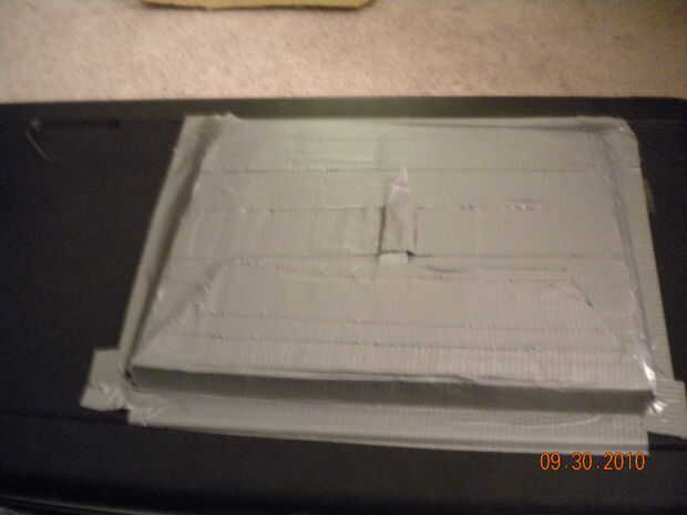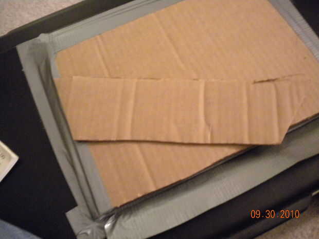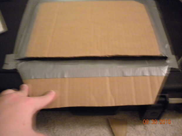 You can make a lid! Cortar un rectángulo de cartulina del tamaño de la abertura y cinta adhesiva en ambos lados. Luego, realizar un trapezoide de cartón del ancho de su abertura y 4inches alto. cinta adhesiva a la aleta pequeña de ambos lados. A continuación, hacer una pieza doble antiadherente para su lengüeta y cortar a cualquier tamaño que desee. Haga un bucle de diapositiva con la pestaña de la carpeta, sólo lo suficientemente ancha como para tirar la ficha a través de. una vez que tienes que trabajar, terminar! cubrir con más gris, o hacer diseños con diferentes colores. ¡ Vuélvase Loco! Divertirse con él, y espero que esto ha ayudado a todas las personas con falta de carpeta casos como el mío.