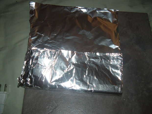 LAF está parado para el laminado de aluminio - en este caso va a utilizar papel de aluminio doméstico que es laminado con cinta de embalaje regular. Es fuerte, durable y rasgar-resistente. Es flexible, conductor, fácilmente cortado, doblado o en form